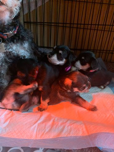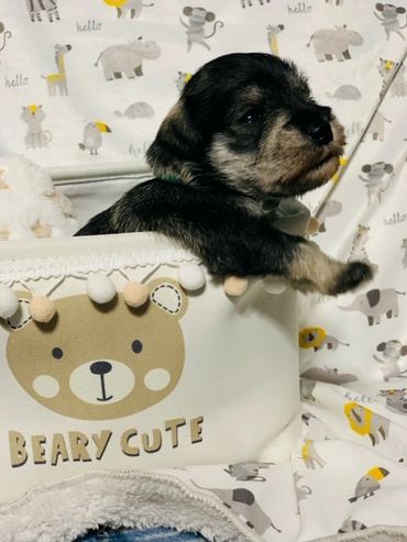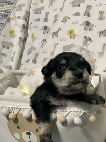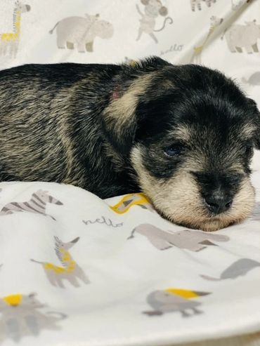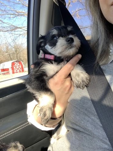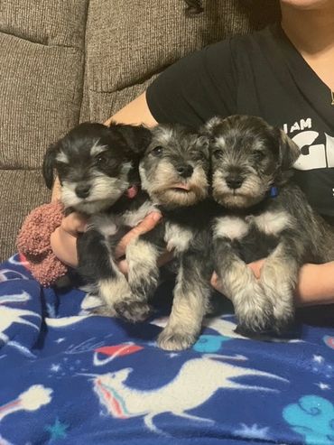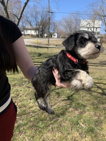Our mini-schnauzers are very protective breeds and are typically alert of all things that happen around them. They will definitely let you know if they suspect any intruders. Mini-schnauzers love playing fetch as well as sticking by their owner's side. They have great temperaments around children and love snuggling and being petted. They are very intelligent and respond well towards training.